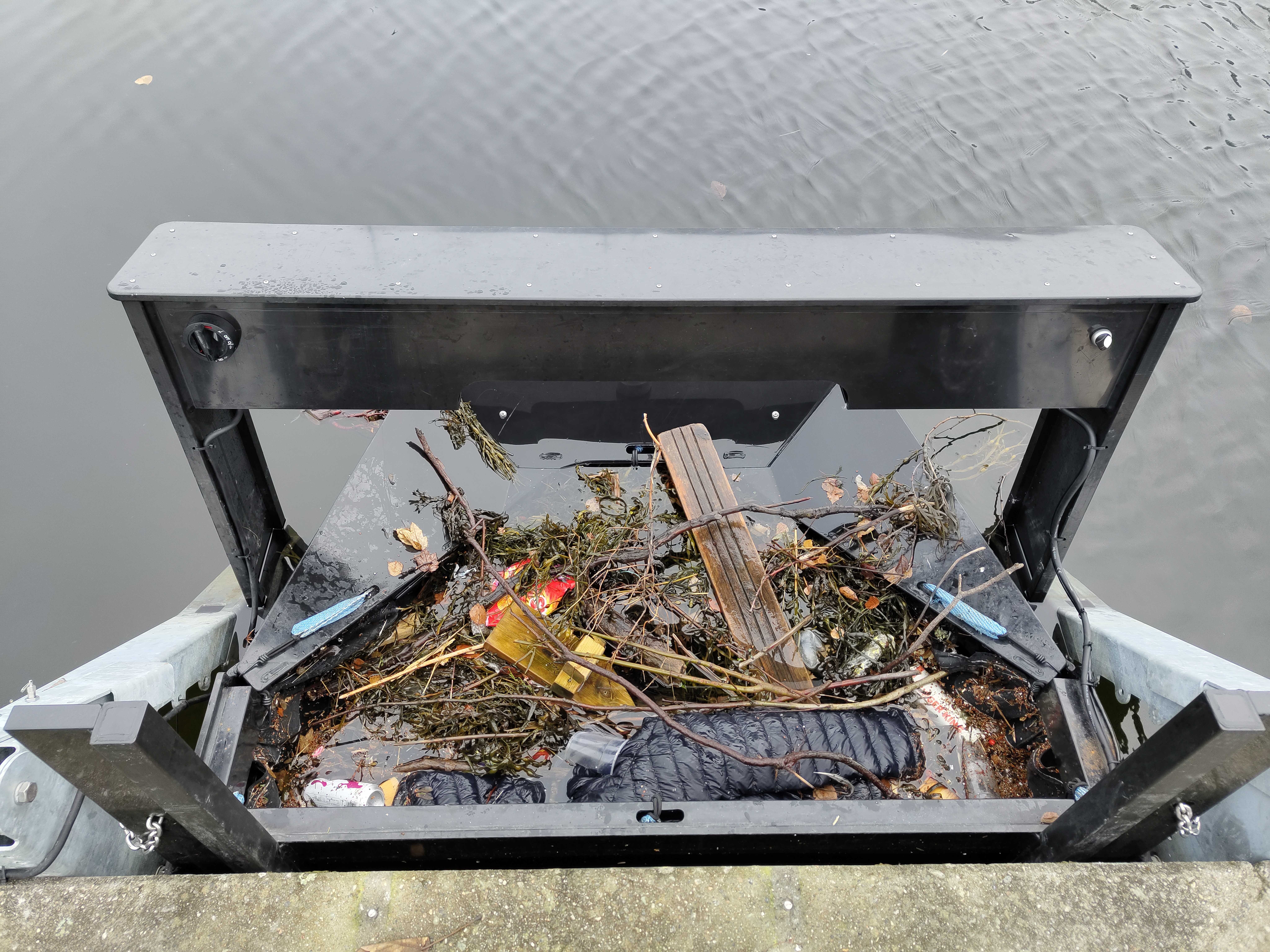 Bilde: Aquapod samler opp smått og stort i havnebassenget (Foto: Clean Sea Solutions).