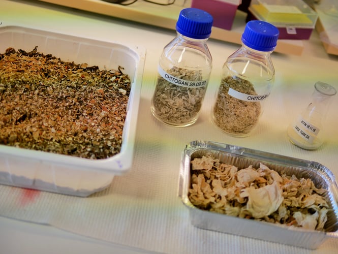 I prosjektet «Krabbekitin» støttet av Forregion-programmet i Trøndelag fylke, har vi sett nærmere på akkurat dette. Den nystartede bedriften Hitra Chitosan AS har i samarbeid med Møreforsking sett på muligheter for å trekke ut kitin fra restråstoff av krabbe. Hovedmål har vært å finne gode metoder for utnytting av krabbeskall som en bioressurs ved fremstilling av kitin og kitosan.
